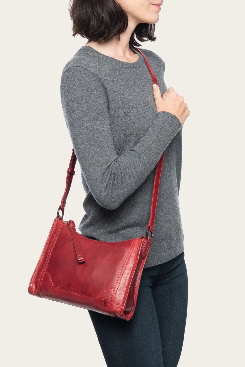 - Adjustable leather crossbody strap