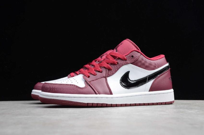This offering of the low-top Air Jordan 1 features White leather on the side panels and toe paired with Black covering the Swoosh logos, Jumpman tongues, and Wings on the heels. Noble Red leather overlays paired with matching tongues, laces, and rubber outsole completes the design.