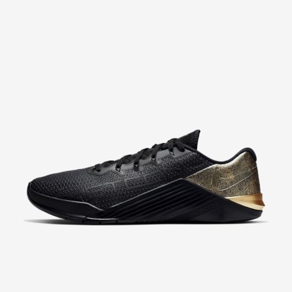 The Nike Metcon 5 Black x Gold is the most tuned Metcon yet, with improvements that increase its durability, stability and speed. It even includes a Hyperlift insert that's compatible with all prior versions of the Metcon. This shoe is built for the athlete who wants to get stronger every day.