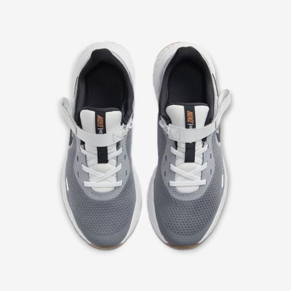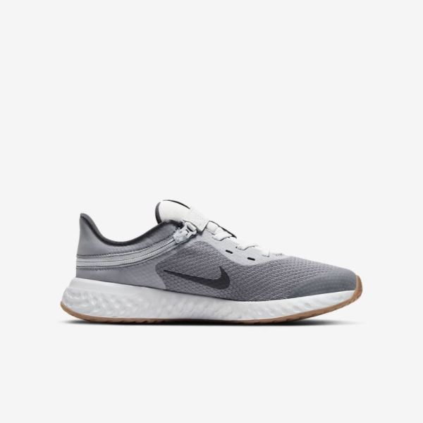 Run and play in the Nike Revolution 5. FlyEase technology has a strap and zip that wraps around the heel so you can easily take the shoe on and off. Lightweight mesh and foam cushioning give you revolutionary comfort.